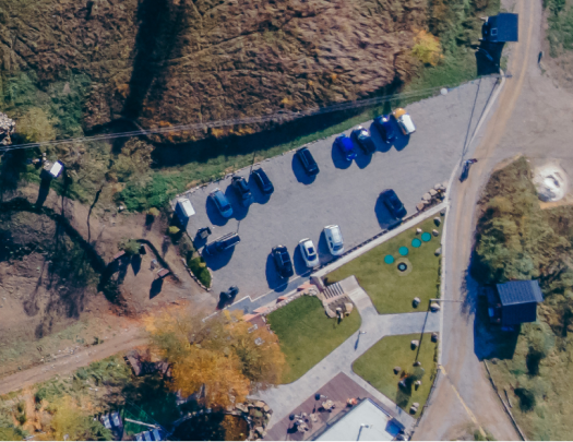 Для паркування автомобілів ми виділили окрему зону, щоб автомобілі не знаходились на території комплексу і не заважали вашому відпочинку, насолоджуватись тишею та красою природи.